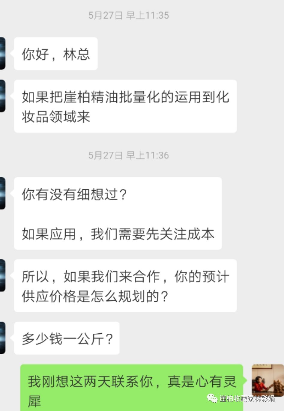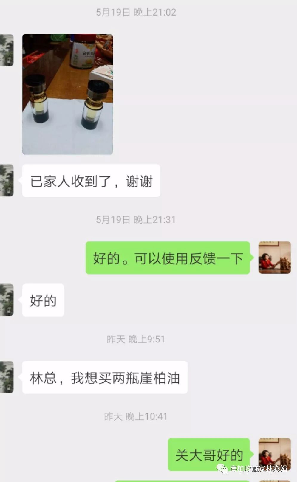 好的效果再加上不断的追销,短短一个月我的第一批崖柏精油被销售一空,还有大量的客户想做我的代理。