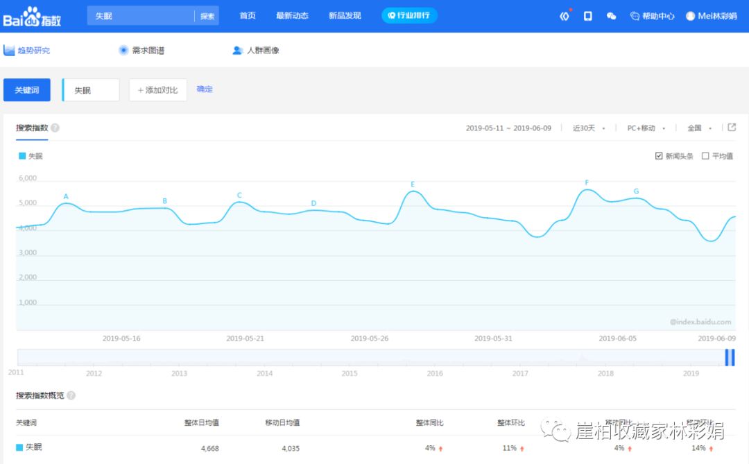 她查看百度指数和微信指数,发现“失眠”的指数非常高。现代社会,太多人饱受失眠困扰,身心痛苦。(受众广)